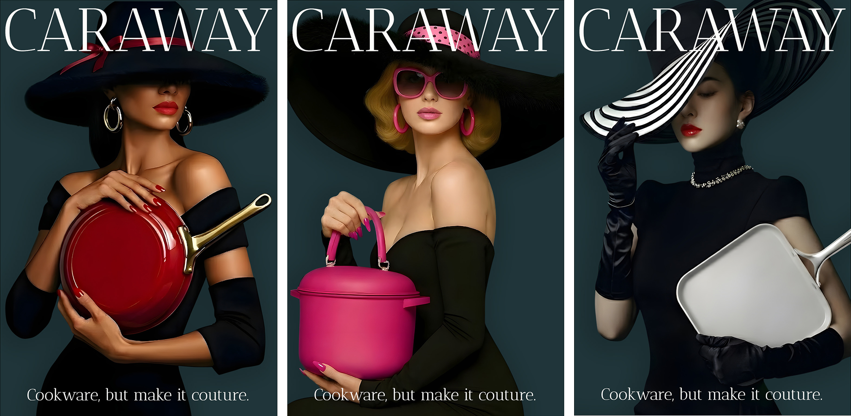 Position Caraway as cookware that belongs in the open, not hidden in cabinets. Celebrate the idea that cookware can be both functional and beautiful, designed to live as part of the kitchen’s visual identity.
